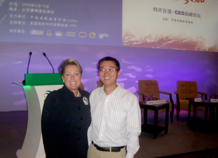 2009年5月10日,南方略重慶公司總經(jīng)理王清華在北京香格里拉酒店與美國DWYER集團(tuán)主席DINA女士一起交流DWYER在中國的品牌發(fā)展問題。